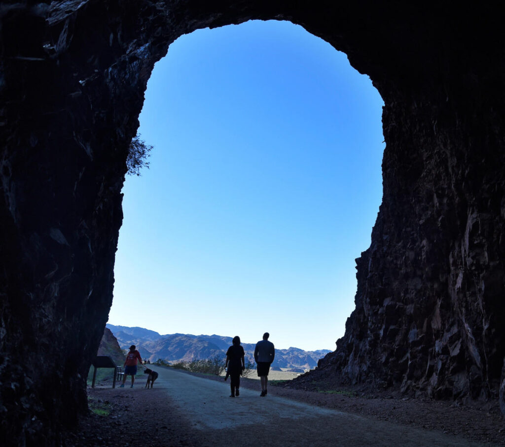 The Railroad Tunnel Trail is a scenic and historic hike located just outside of Las Vegas, offering a peaceful escape from the city without requiring a long drive. Situated near Boulder City in the Lake Mead National Recreation Area, the trail follows the route of a former railroad used during the construction of the Hoover Dam in the early 1930s. Because it’s only about 30 minutes from the Las Vegas Strip, it’s a popular option for locals and visitors looking for an easy outdoor adventure close to town.