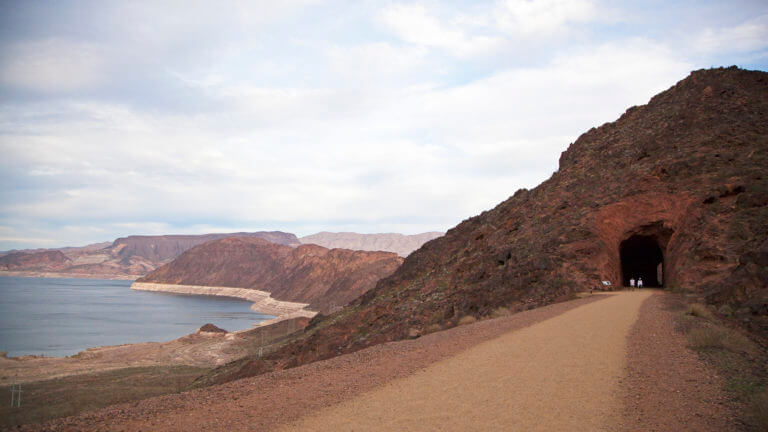 As you walk or bike along the trail, you’ll be surrounded by classic Mojave Desert scenery, including rugged cliffs, wide-open skies, and desert plants that thrive in the harsh environment. Interpretive signs along the route share the history of the railroad and the monumental effort it took to build Hoover Dam, adding an educational element to the experience. On clear days, the views of the lake and distant mountains are especially striking.