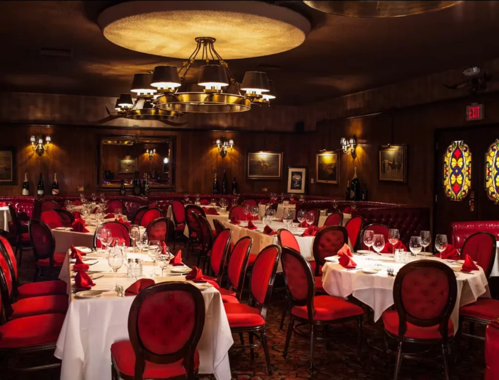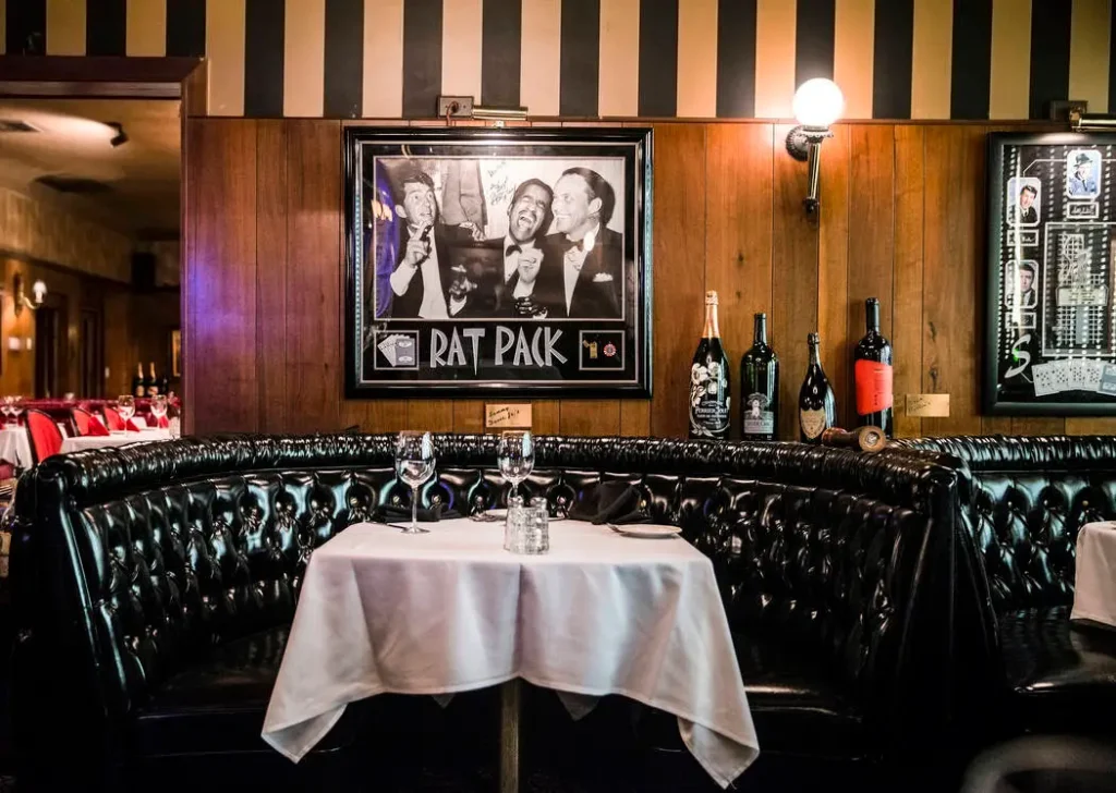 These names helped cement the restaurant’s reputation as a gathering place for the Rat Pack era and beyond. Red leather booths inside the dining room are even named after famous guests, preserving their legacy and adding to the mystique.